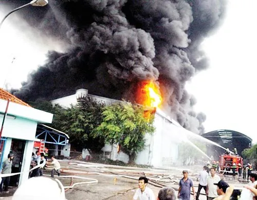 Chiều 27/5, dù trời mưa lớn nhưng tại Công ty Nệm Vạn Thành (xã Tân Phú Trung, huyện Củ Chi) vẫn xảy ra cháy lớn, Cảnh sát PC&CC TPHCM phải mất 5 giờ mới khống chế được đám cháy.