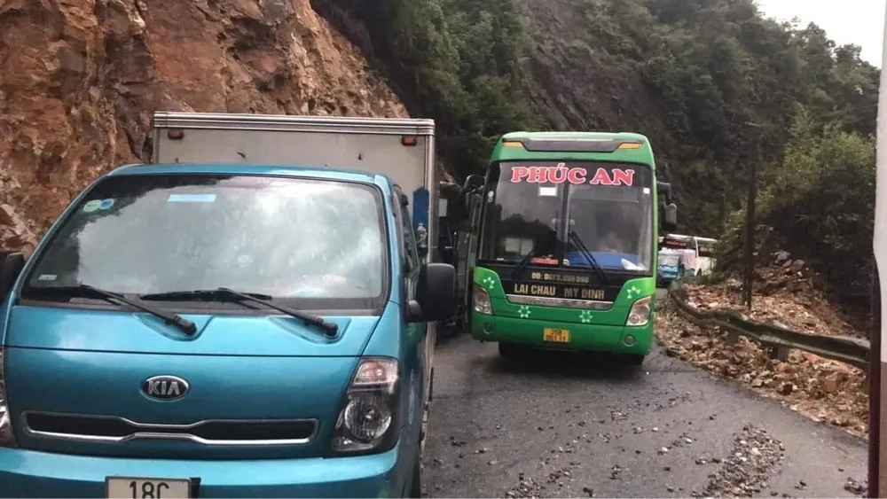 Hiện nay, mưa ở thượng nguồn với cường độ nặng. Lũ bất ngờ về, khiến đất đá trên ta-luy dương dọc Quốc lộ 4D từ Lào Cai đi Lai Châu bị sạt lở nặng, đất đá tràn xuống nham nhở mặt đường tại khu vực đèo Ô Quy Hồ thuộc cung đường từ thị xã Sa Pa sang Lai Châu. Hàng trăm xe tải, xe con, xe máy bị ách tắc, không thể qua lại.