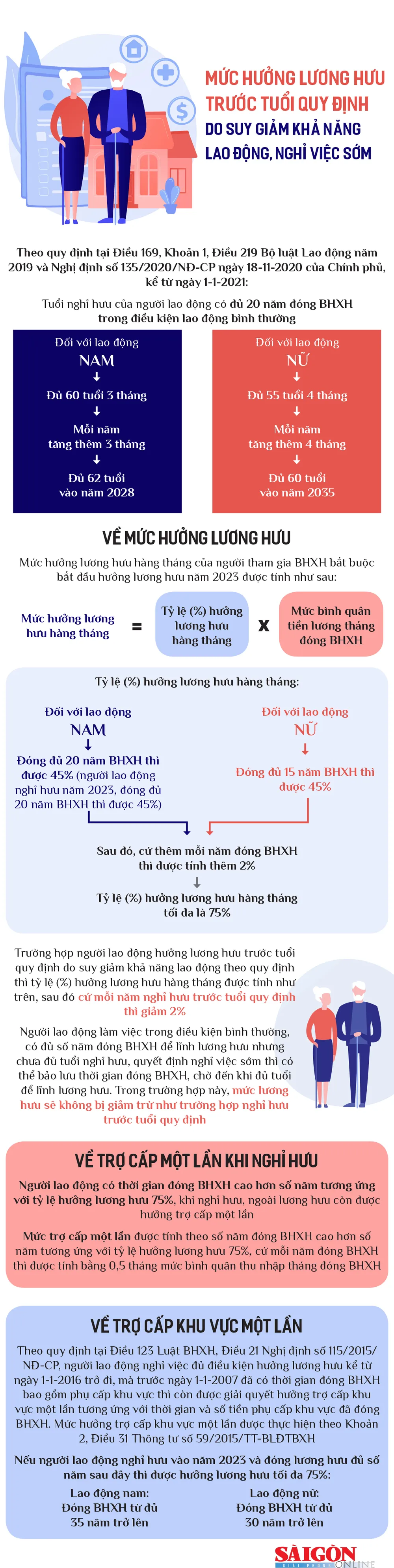 Mức hưởng lương hưu trước tuổi được quy định như thế nào?
