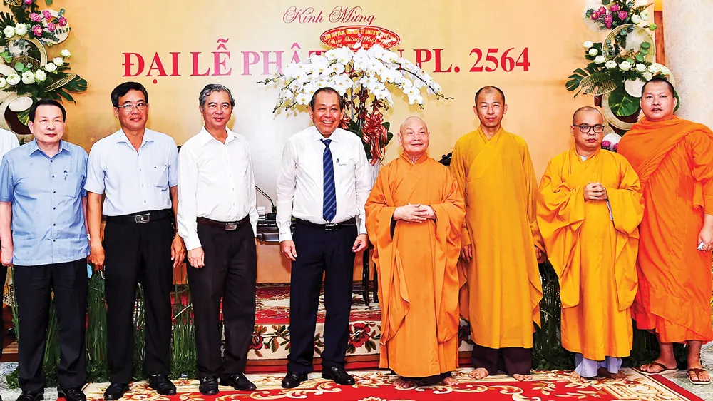 Thay mặt Đảng, Nhà nước, MTTQ Việt Nam, Phó Thủ tướng Thường trực Trương Hòa Bình chúc mừng Hòa thượng Thích Thiện Nhơn cùng toàn thể chư tăng ni, phật tử đón mừng lễ Phật đản Phật lịch 2564, dương lịch 2020 sức khỏe, tinh tấn và an lạc. Phó Thủ tướng Thường trực Trương Hòa Bình nhấn mạnh, hơn 2.000 năm có mặt ở Việt Nam, Phật giáo đã trở thành tôn giáo được đông đảo người dân đón nhận và tin theo. Phật giáo Việt Nam luôn gắn đạo với đời, có truyền thống yêu nước, đồng hành cùng dân tộc. Thực hiện công cuộc đổi mới, Đảng và Nhà nước lãnh đạo đưa dân tộc ta trên con đường xây dựng xã hội mới với mục tiêu “Dân giàu, nước mạnh, dân chủ, công bằng, văn minh”; luôn tôn trọng và bảo đảm quyền tự do tín ngưỡng, tôn giáo của nhân dân, bảo đảm sinh hoạt tôn giáo đúng pháp luật, tạo điều kiện cho đồng bào có đạo và chức sắc các tôn giáo, trong đó có Phật giáo, thực hiện tốt việc tu hành chân chính, làm tròn bổn phận của công dân đối với Tổ quốc.