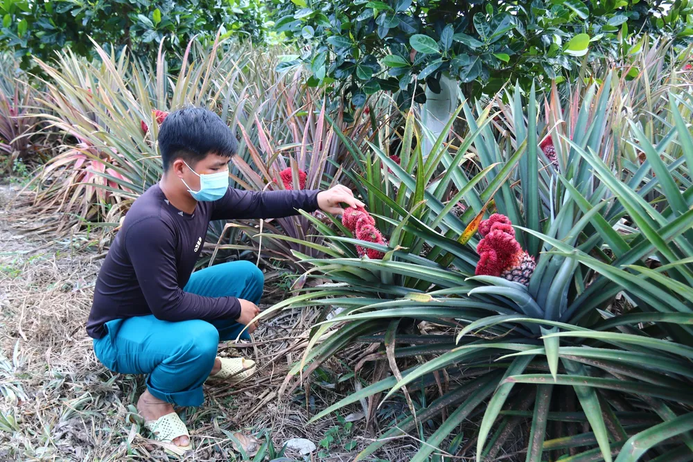 Vườn của chị Nguyễn Thị Huệ, ấp Mỹ Lộc đã được thương lái đến đặt cọc hết tất cả hơn một ngàn trái khóm phụng với giá giao động từ 100.000 - 250.000 đồng/ trái. Hơn 10 năm qua, loại khóm này đã giúp gia đình chị “ăn tết lớn” bởi loại trái cây không ăn được này rất có giá và dịp tết, lại dễ trồng, dễ chăm sóc, ít tốn phân thuốc.