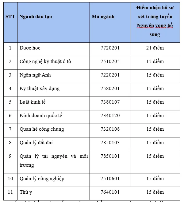 - Thí sinh không đăng ký xét tuyển nguyện vọng 1.