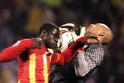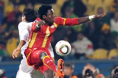 Nét mặt của Asamoah Gyan sau khi ghi bàn giúp Ghana đại diện châu Phi đi tiếp vào vòng 1/8. Ảnh: AFP