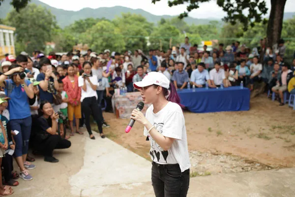 Ca sĩ Mỹ Tâm tặng quà cho học sinh nghèo và biểu diễn phục vụ bà con huyện Nông Sơn
