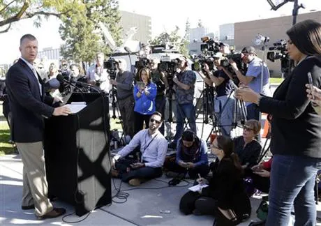 Phát ngôn viên cảnh sát Quận Cam, California Jeff Hallock trả lời các câu hỏi của truyền thông tại cuộc họp báo ở Santa Ana, California, Mỹ, ngày 25-1-2016. Ảnh: AP