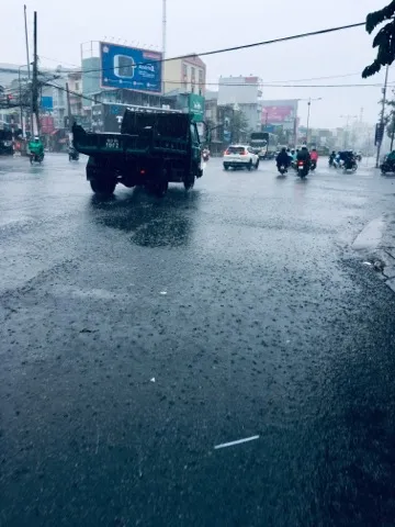 Đến 14 giờ 10 phút ngày 7-5, mưa vẫn trắng xóa tại trung tâm thành phố Cần Thơ