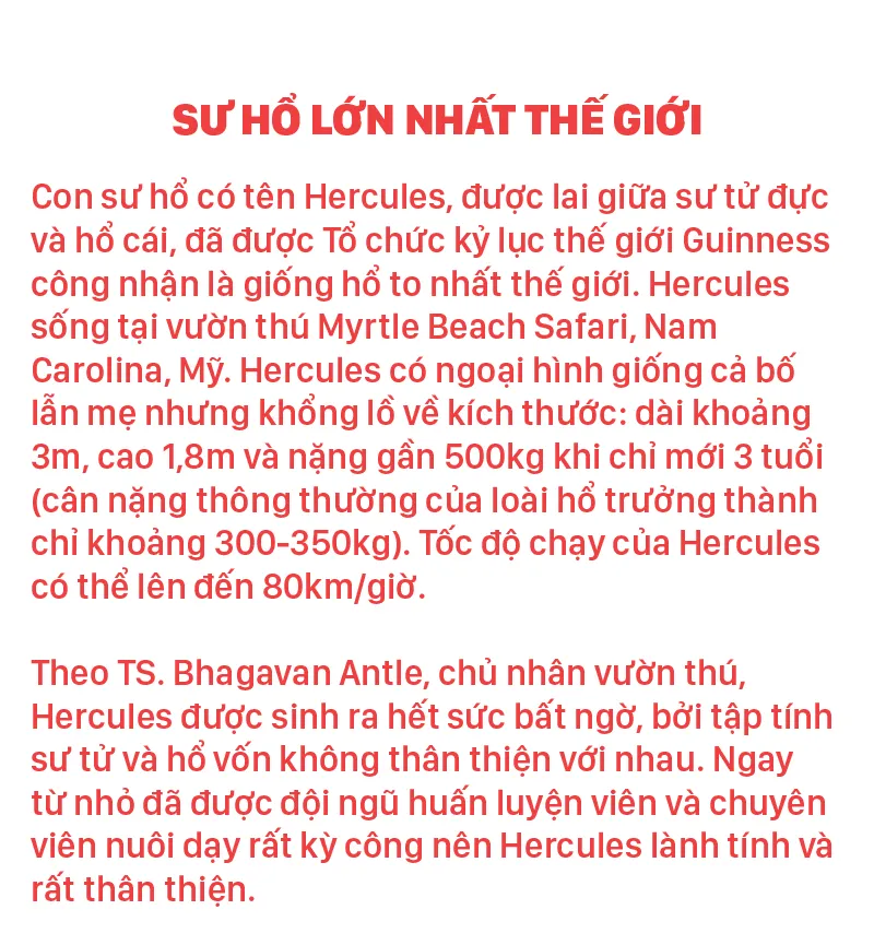 Con sư hổ có tên Hercules, được lai giữa sư tử đực và hổ cái, đã được Tổ chức kỷ lục thế giới Guinness công nhận là giống hổ to nhất thế giới.