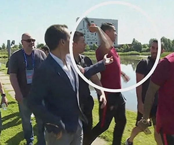 Ronaldo ném micro của phóng viên xuống hồ nước