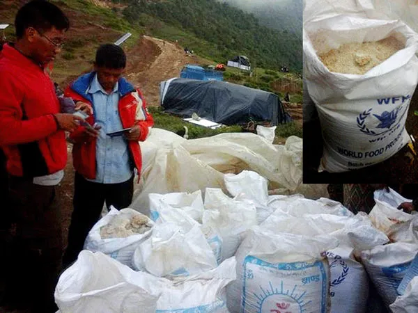 Gạo bị lên mốc được phân phát cho các nạn nhân ở Nepal.