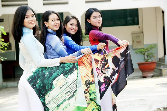 Thướt tha, uyển chuyển trong những chiếc áo dài truyền thống được thiết kế đẹp mắt, các “người mẫu” - học sinh - tự tin trình diễn một cách chuyên nghiệp trên sân khấu. Bên cạnh những tà áo dài trắng tinh khôi, thanh lịch mặc đi học, nhiều lớp trình diễn những chiếc áo được thiết kế độc đáo, lạ mắt. Đó là những hình ảnh của quê hương, đất nước quen thuộc như thư pháp, hoa sen, tranh đông hồ hoặc các công trình kiến trúc nổi tiếng của TPHCM… Là một trong những nữ sinh lớp 11D1 đầu tư cho chiếc áo dài độc đáo, kèm theo đội chiếc mấn truyền thống, Nguyễn Lê Uyên Phương trông duyên dáng và trình diễn không thua người mẫu chuyên nghiệp. Uyên Phương cho biết: “Em rất thích mặc áo dài mỗi khi đến trường. Nhưng trước đây chỉ quy định phải mặc một ngày vào thứ hai thì hơi ít. Hơn nữa, nếu ngày đầu tuần trùng với tiết học thể dục thì không mặc được áo dài, thấy hơi ấm ức”. Giành giải nhì từ cuộc thi “Áo dài duyên dáng” năm học trước và năm nay không tham gia, nhưng nữ sinh Như Phương (lớp 12D) cũng có nhiều cảm xúc khi hòa chung không khí nhộn nhịp của ngày hội trang phục truyền thống này. Theo em, những năm trước chỉ mặc áo dài một lần vào đầu tuần nên chưa thấy hết sự duyên dáng, tinh tế và đáng yêu của nó. Bây giờ mặc thêm một ngày trong tuần, các nữ sinh sẽ cảm thấy thích hơn, bớt đi sự khó chịu cũng như cảm giác nó hơi bất tiện.
