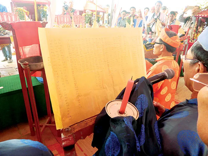 Các cụ cao niên làm lễ và đọc bài văn tế trong buổi lễ