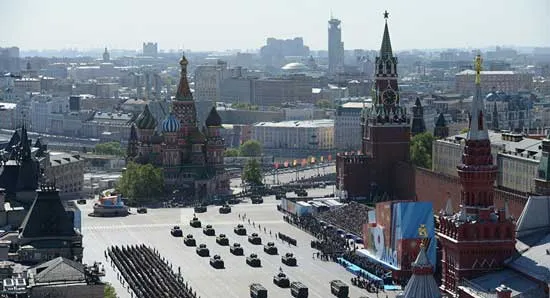 TASS cho biết, Tổng thống Vladimir Putin cùng Thủ tướng Dmitry Medvedev và các đại diện chính phủ đã tham dự cuộc diễu binh tại Quảng trường Đỏ ở Moscow.