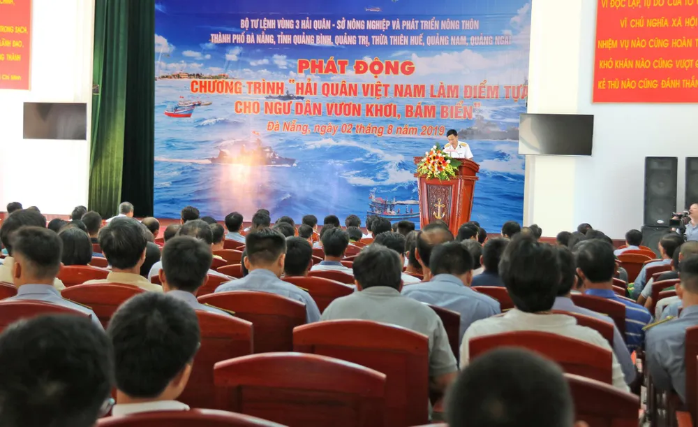 Chiều 2-8, Bộ Tư lệnh vùng 3 hải quân phối hợp với Sở Nông nghiệp - Phát triển nông thôn (NN-PTNT) TP Đà Nẵng, và các tỉnh Quảng Nam, Quảng Trị, Quảng Bình, Thừa Thiên - Huế, Quảng Ngãi phát động chương trình “Hải quân Việt Nam làm điểm tựa cho ngư dân vươn khơi, bám biển”.