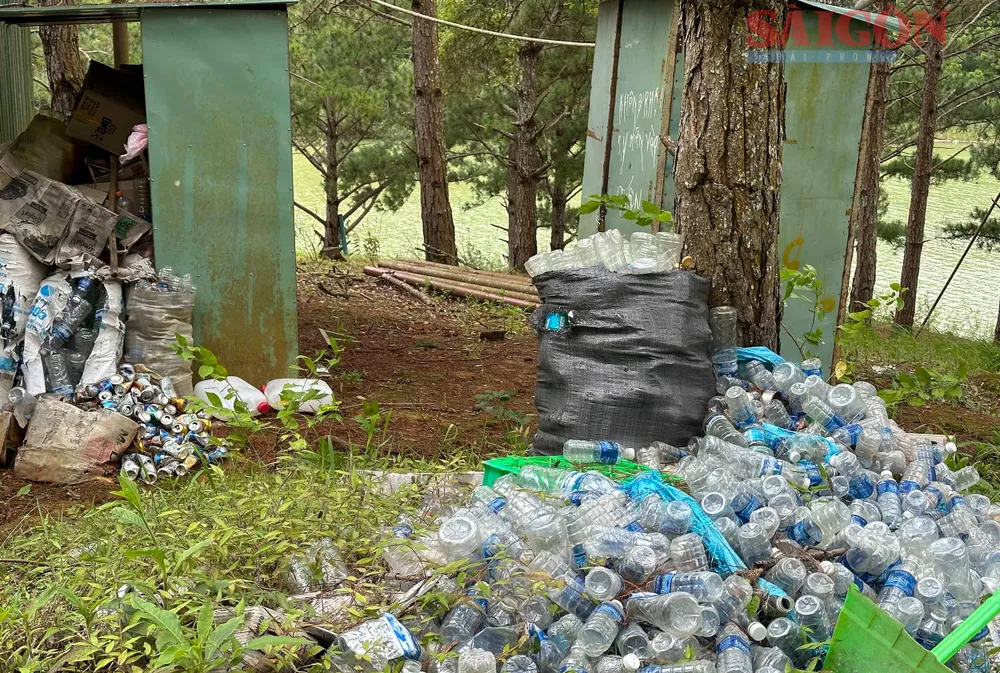 | Phía cuối đường dẫn còn "mọc" lên khu cắm trại trái phép ngay cạnh mặt nước hồ Tuyền Lâm. Ảnh: ĐOÀN KIÊN |