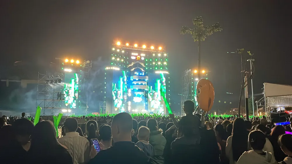 Càng về khuya, không khí càng sôi động, dòng người tiếp tục đổ về ngày một đông. Nhiều gia đình, nhóm bạn thong thả dạo phố, chụp ảnh, tận hưởng không gian rực rỡ ánh sáng và âm nhạc.