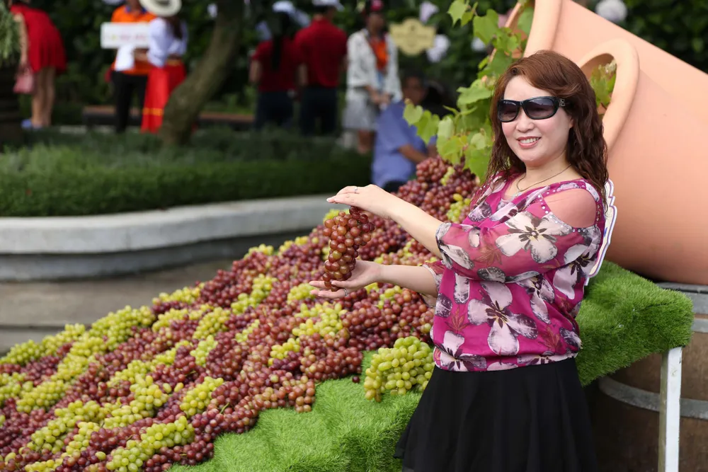 Liên tục selfie với những tiểu cảnh độc đáo được tạo nên từ nho tươi, những thùng ủ vang, ly và chai vang khổng lồ, chị Nguyễn Thu Hiền đến từ Hà Nội nói với tôi: “Đẹp quá, không nghĩ là Sun World Ba Na Hills lại có những tác phẩm thú vị đến vậy. Tôi đã chụp cả giờ đồng hồ rồi đấy. Nhưng bỏ cảnh nào cũng tiếc".