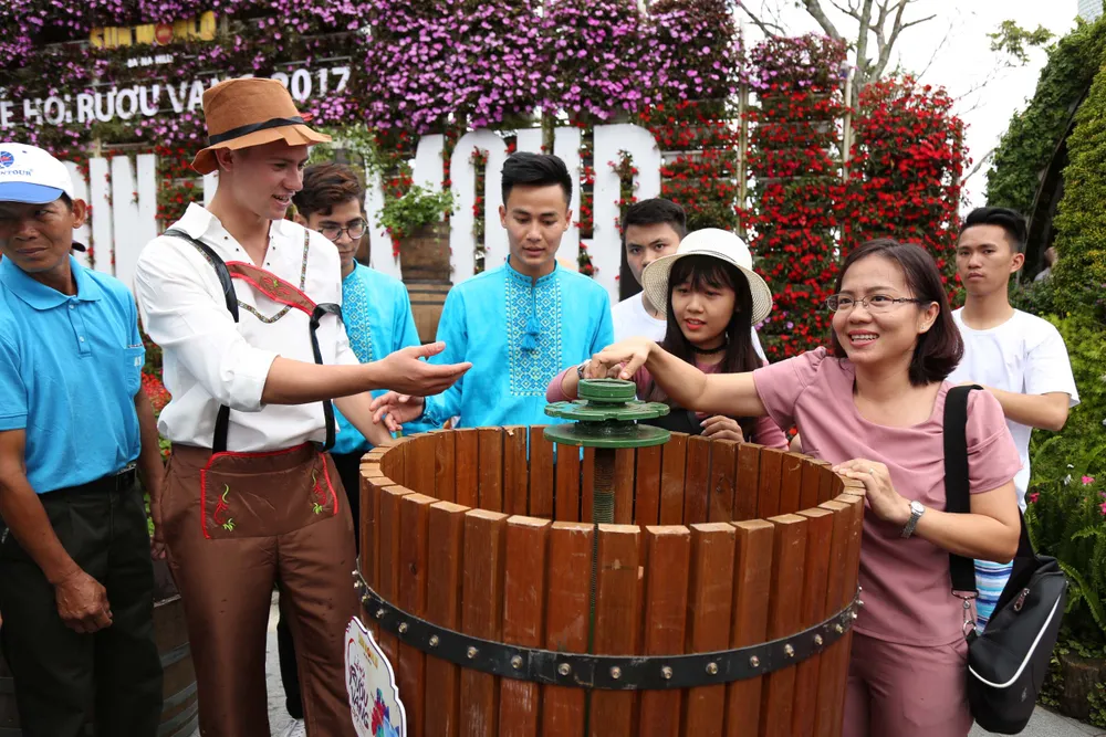 Nhưng không gì thích thú bằng được tự tay nghiền nho, vận hành máy ép nho và tham gia những công đoạn làm vang thủ công. Ngọc Trầm (một du khách đến từ TPHCM) nói: “Tuy không uống được rượu vang nhưng tôi rất thích các nội dung chương trình. Tôi đã háo hức được trải nghiệm các công đoạn sản xuất vang thủ công truyền thống. Thật tuyệt diệu”.