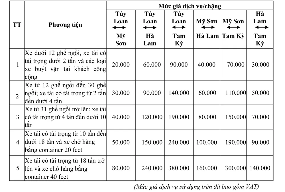 VEC cũng ban hành mức giá sử dụng dịch vụ tuyến cao tốc Đà Nẵng - Quảng Ngãi trong giai đoạn khai thác tạm như sau: