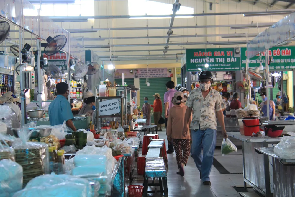 Ban quản lí nhắc nhở các gian hàng ăn uống phục vụ tại chỗ tránh tập trung đông người