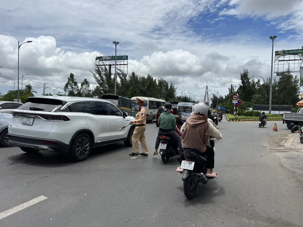 | CSGT Công an tỉnh Tiền Giang điều tiết giao thông vào sáng 1-9 tại cầu Rạch Miễu |