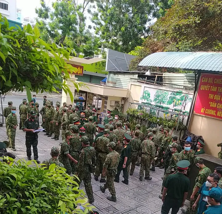 Lực lượng quân đội đang nghe chỉ đạo thực hiện phòng, chống dịch Covid-19. Ảnh: DŨNG PHƯƠNG