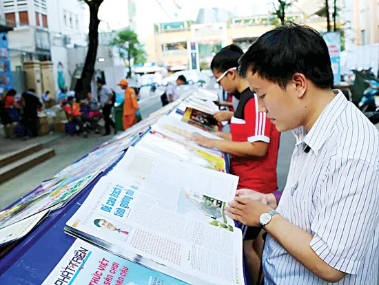 Bạn đọc xem báo xuân trưng bày trên đường Nguyễn Văn Bình, TPHCM