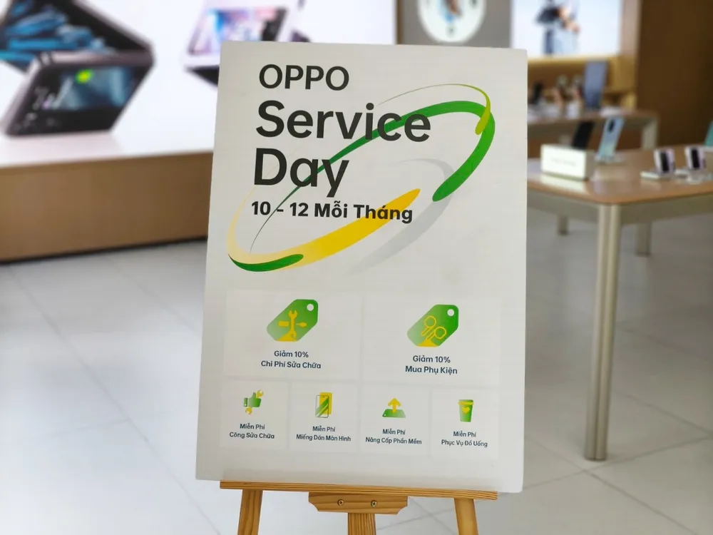 Vào ngày OPPO Service Day từ ngày 10-12 hàng tháng (thời gian có thể thay đổi do lễ tết hoặc di dời nâng cấp trung tâm), trung tâm sẽ mang đến những ưu đãi như: giảm 10% chi phí thay thế linh kiện, giảm 10% mua phụ kiện thoại, miễn phí miếng dán màn hình, miễn phí vệ sinh điện thoại, miễn phí nâng cấp phần mềm, miễn phí phí nhân công...