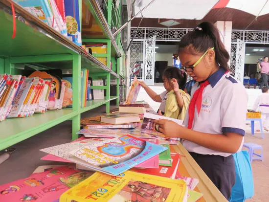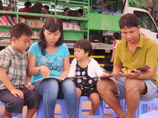 Một xe sách lưu động phục vụ Ngày hội Đọc sách cho thiếu nhi