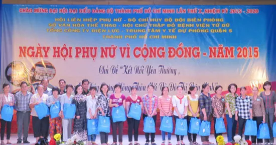 Cùng ngày, ban tổ chức chương trình phối hợp đoàn y bác sĩ của Hội Chữ Thập đỏ Bệnh viện Từ Dũ và Trung tâm Y tế Dự phòng Quận 5 TPHCM tổ chức khám chữa bệnh, cấp thuốc miễn phí cho 500 nữ cựu thanh niên xung phong, gia đình chính sách có công với cách mạng, nữ cựu tù Chính trị, phụ nữ khuyết tật, phụ nữ có hoàn cảnh khó khăn.