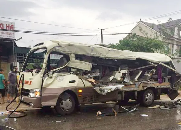 Hiện trường vụ tai nạn xe tải va chạm xe khách chiều 31-3 trên quốc lộ 48