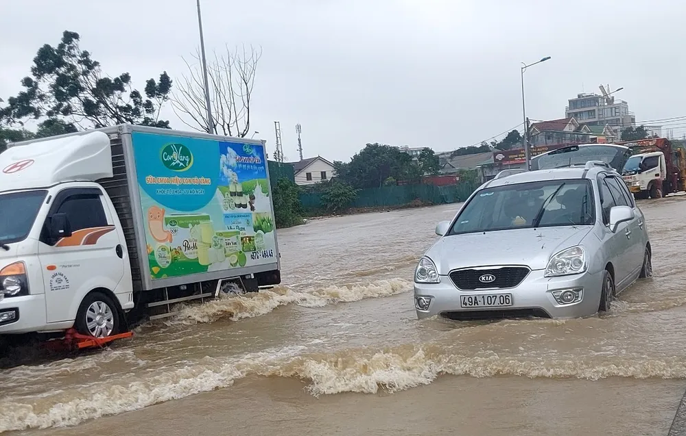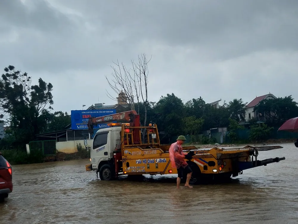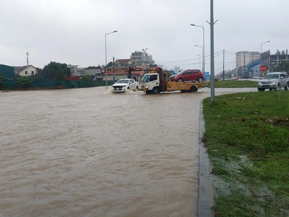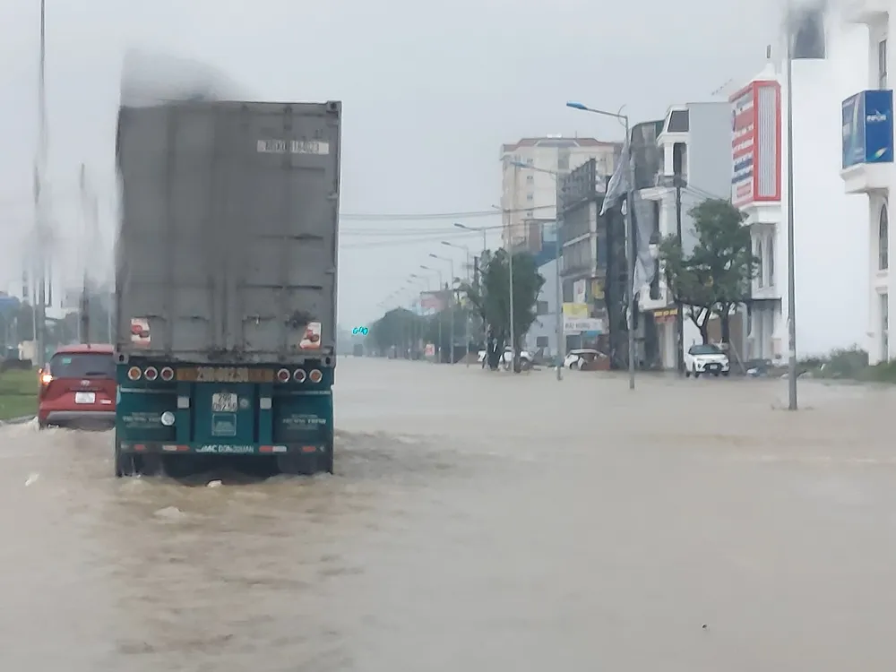 Mưa lớn kéo dài từ tối qua đến sáng nay (13-11) đã khiến nhiều tuyến đường ở TP Vinh (Nghệ An) ngập nặng.