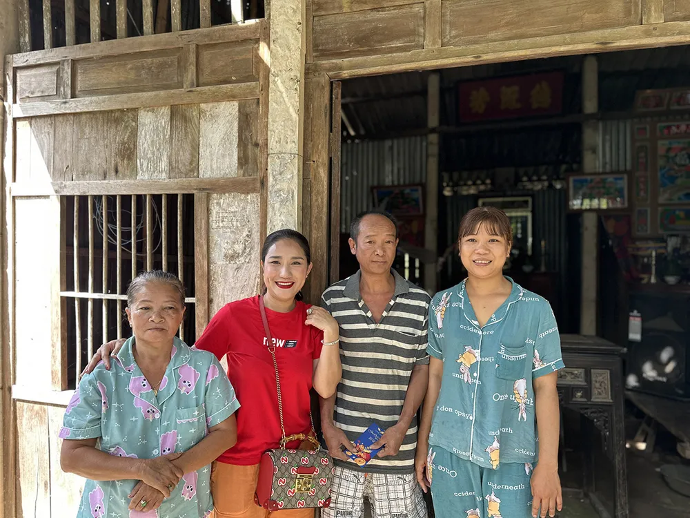 Nghệ sĩ Cát Tường vừa đến Vĩnh Long để trao quà cho 10 hộ gia đình có hoàn cảnh khó khăn với 2 triệu đồng tiền mặt tại xã An Bình, huyện Long Hồ, tỉnh Vĩnh Long.