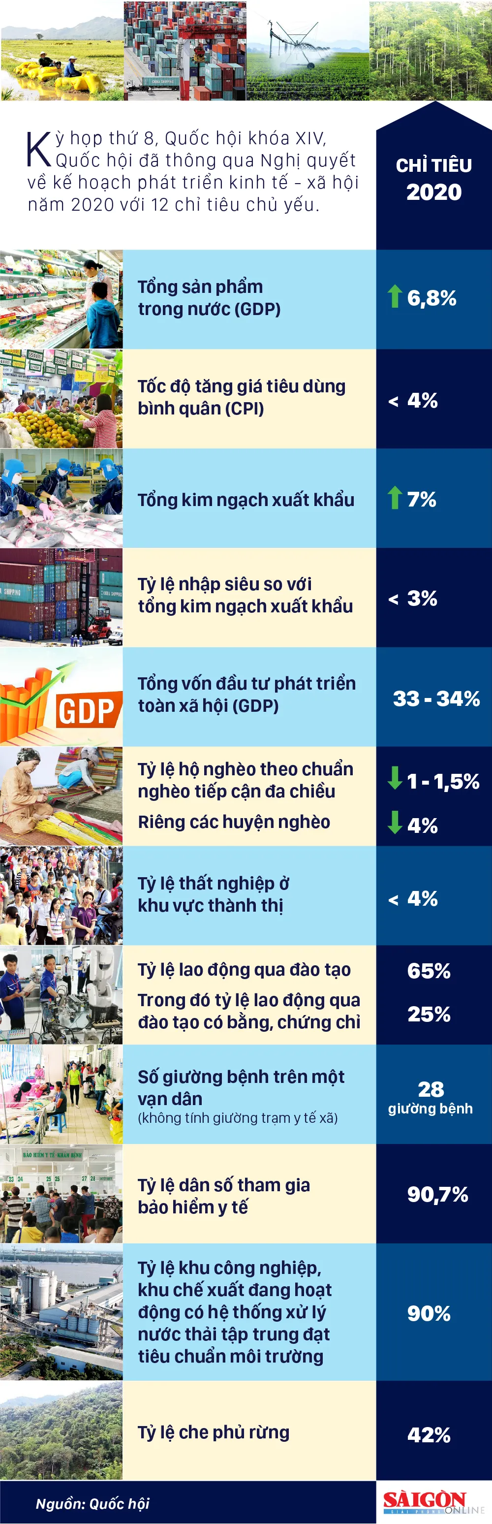 Kỳ họp thứ 8, Quốc hội khóa XIV, Quốc hội đã thông qua Nghị quyết về kế hoạch phát triển kinh tế - xã hội năm 2020 với 12 chỉ tiêu chủ yếu.