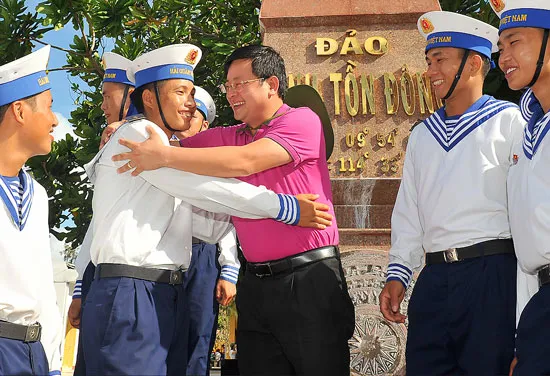 Phó Bí thư Thường trực Thành ủy TPHCM Võ Văn Thưởng thăm hỏi các chiến sĩ quê ở TPHCM đang làm nhiệm vụ tại đảo Nam Yết.
