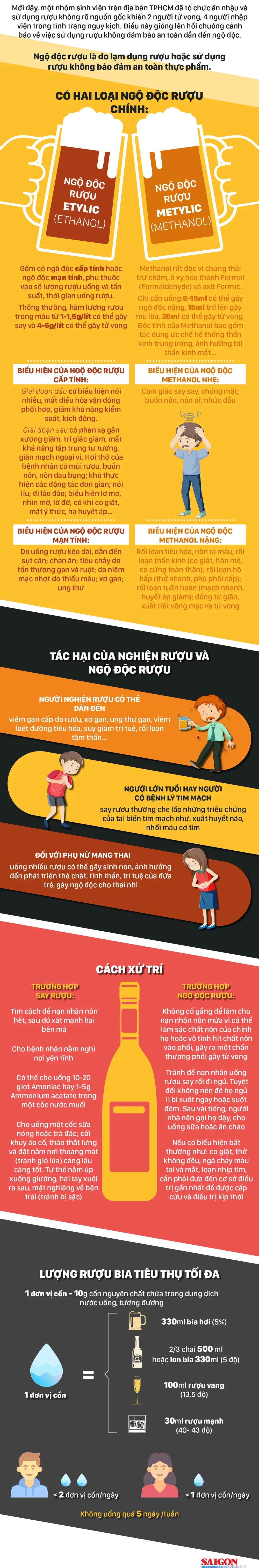 Mới đây, một nhóm sinh viên trên địa bàn TPHCM đã tổ chức ăn nhậu và sử dụng rượu không rõ nguồn gốc khiến 2 người tử vong, 4 người nhập viện trong tình trạng nguy kịch. Điều này gióng lên hồi chuông cảnh báo về việc sử dụng rượu không đảm bảo an toàn dẫn đến ngộ độc.