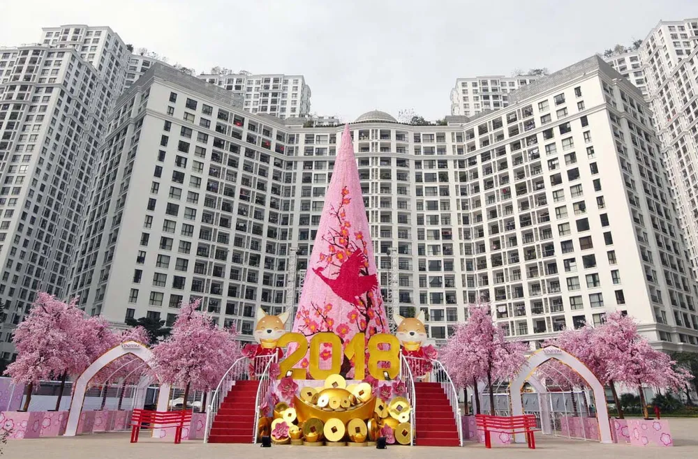 Tại Vincom Mega Mall Times City (Hà Nội), mọi người sẽ được thoải mái bên nhau dạo chơi, lưu lại những hình ảnh Tết hân hoan trên con đường hoa đào ven hồ nhạc nước lãng mạn.