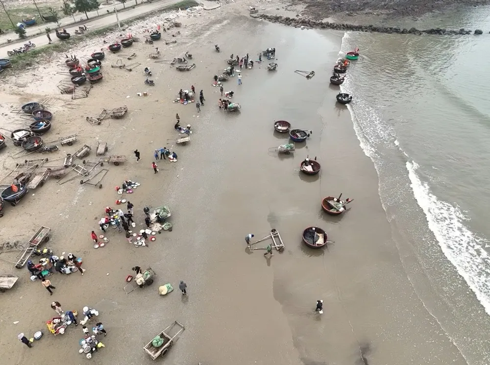 Bắt đầu từ mùng 2 Tết, trong khi tàu đánh bắt xa bờ chuẩn bị hành trình vươn khơi xa thì ngư dân đánh bắt gần bờ cũng cho bè mảng, thuyền thúng hướng ra biển.