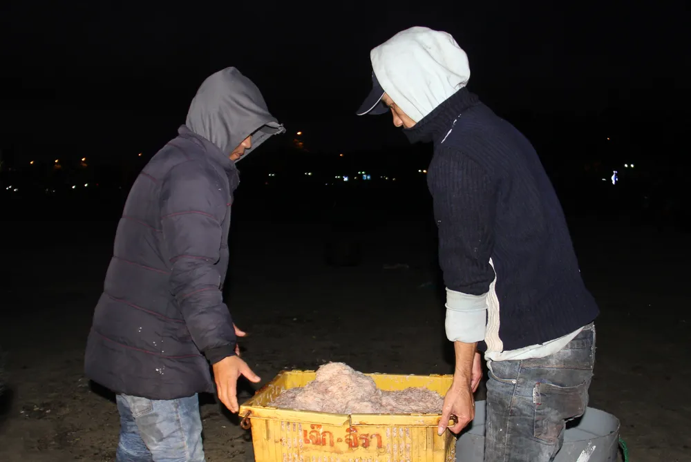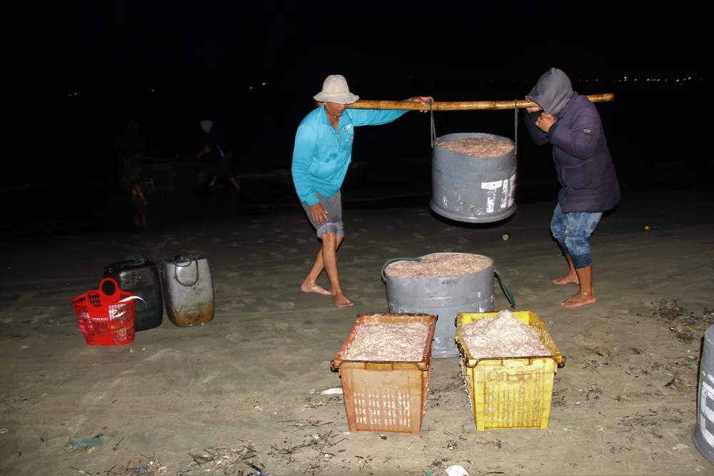Theo ngư dân nơi đây, để có những chuyến tàu đầy ruốc, họ thường ra khơi từ chiều hôm trước và thức xúc ruốc thâu đêm. Đến 4-5 giờ sáng ngày hôm sau, ruốc được chở bằng những chiếc thúng nhỏ, đưa vào bãi ngang trên đường Hoàng Sa thuộc phường Thọ Quang, quận Sơn Trà để kịp buôn bán khi bình minh lên