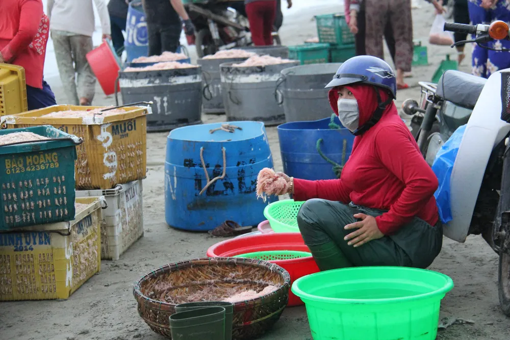 Trở về sau mỗi đêm đánh bắt, những con tàu đánh bắt gần bờ của ngư dân phường Thọ Quang (quận Sơn Trà, TP Đà Nẵng) luôn đầy ắp ruốc biển. Điều này là niềm vui lớn đối với ngư dân ngư dân vùng biển. Vì vậy, những ngày gần đây chợ hải sản ngay tại ven biển trở nên rộn ràng và tấp nập người qua lại.