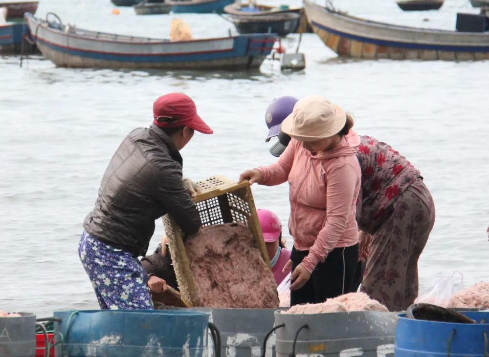 Nhờ thời tiết thuận lợi, việc ra khơi đánh bắt của ngư dân dễ dàng hơn. Trung bình mỗi ngày, một người có thể đánh bắt được hàng tạ ruốc