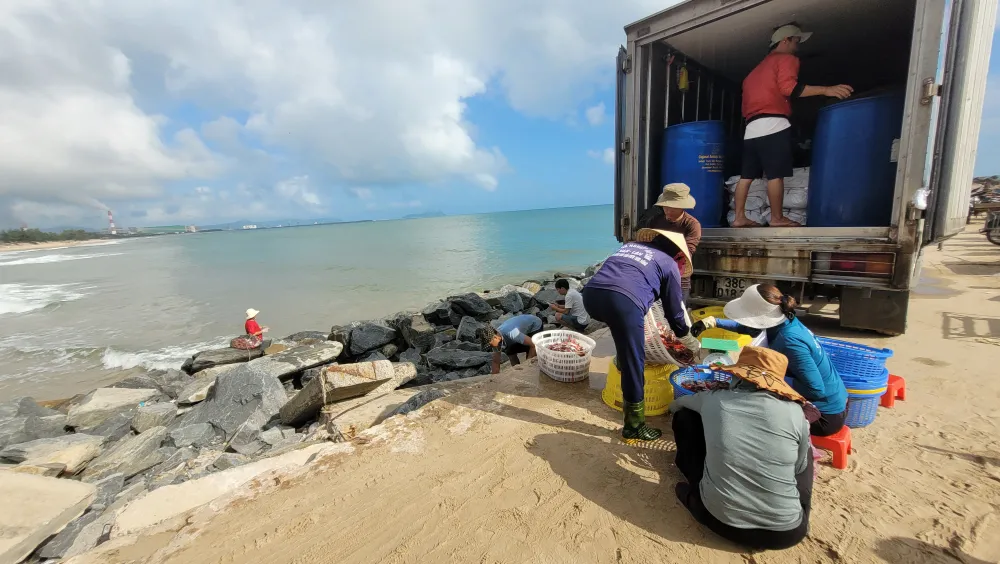 Ruốc biển được mùa, tạo việc làm thời vụ cho nhiều lao động trên bờ ở cảng cá Cửa Sót