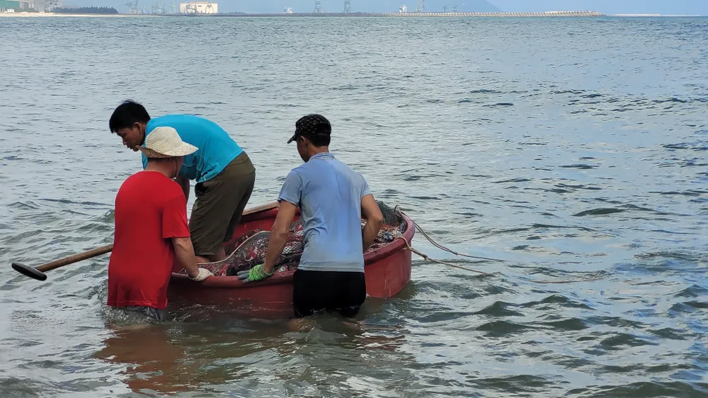 Ngư dân xã Kỳ Phú (huyện Kỳ Anh, Hà Tĩnh) đánh bắt trúng cá hố gần bờ biển