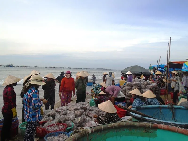 Ngay tại khu vực tập kết hải sản bãi sau Mũi Né, nhiều lao động nữ đã đợi chờ từ sớm để nhận gia công gỡ vỏ sò tại chỗ. Nhờ sản lượng sò nhiều nên công việc của các nữ lao động ở đây diễn ra liên tục. Bình quân, mỗi ký sò điệp sau khi cạy vỏ, sơ chế thì các lao động được trả công khoảng 5.000 đồng, nếu chăm chỉ mỗi người có thể kiếm được vài trăm ngàn đồng một ngày.