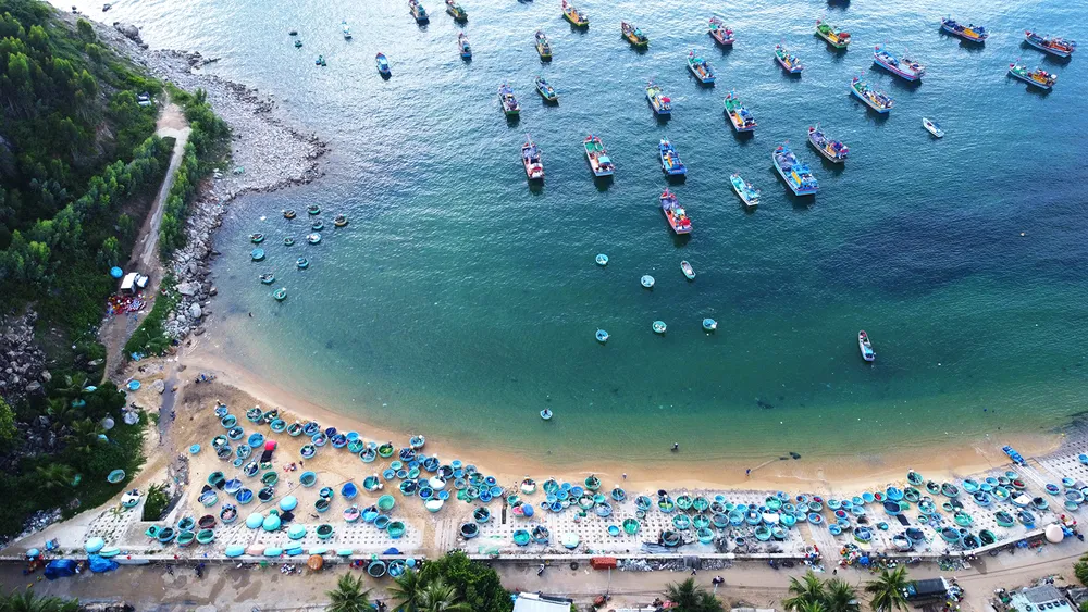 Làng chài Xuân Hải hiện có gần 400 ngư dân chuyên đánh cá bằng thúng chai