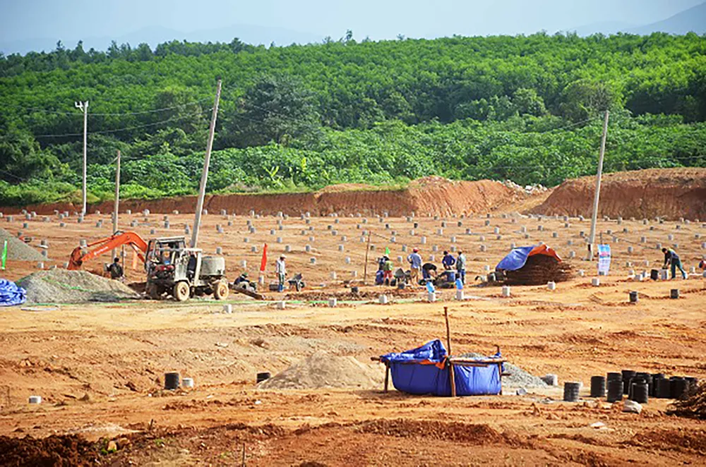 Đơn vị thi công đang san lấp mặt bằng thi công dự án Nhà máy điện mặt trời Xuân Thọ 1. Ảnh: MINH CHÂU