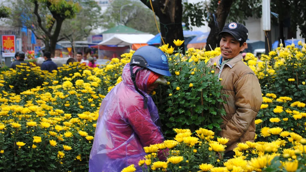 Người dân Huế “đội mưa” đi mua hoa.