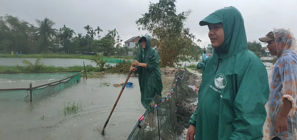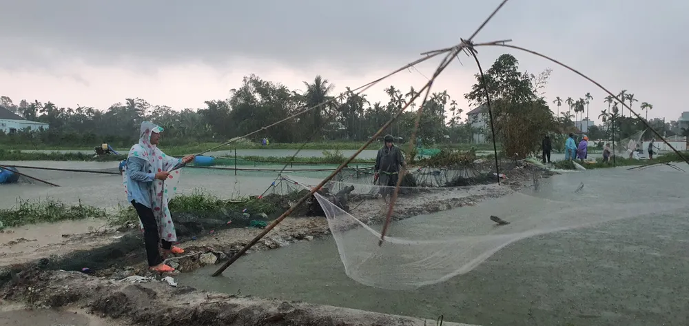 “Giờ mấy anh em cố gắng vớt được gì thì vớt chứ thiệt hại 50-60 triệu đồng/ mỗi ao. Ai nấy cũng cố sức mà mưa lớn, nước lên nhanh quá”, anh Cảnh than thở