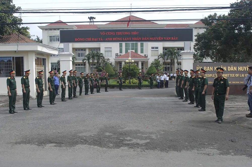 Hơn 9 giờ sáng ngày 26-9, linh cữu của Anh hùng lực lượng vũ trang nhân dân Nguyễn Văn Bảy được đưa về tới Hội trường UBND huyện Lai Vung, tỉnh Đồng Tháp, từ Nhà tang lễ Bộ Quốc phòng (quận Gò Vấp, TPHCM). Chính quyền địa phương cùng đồng chí, đồng đội và đông đảo người dân tỉnh nhà đón ông trong niềm tiếc thương vô hạn.
