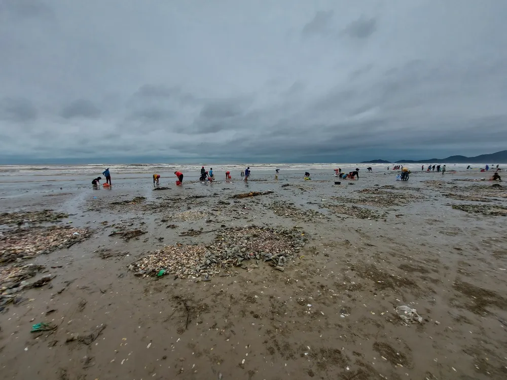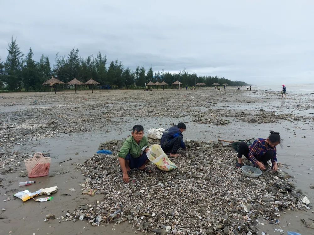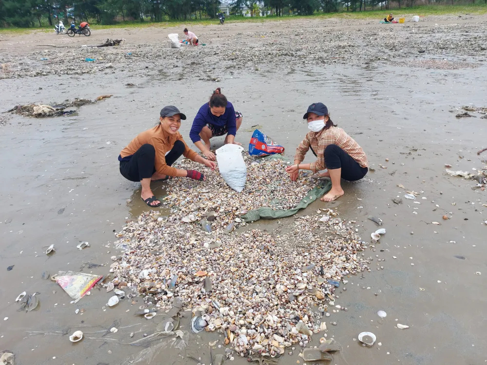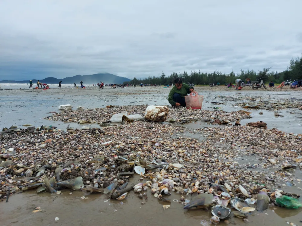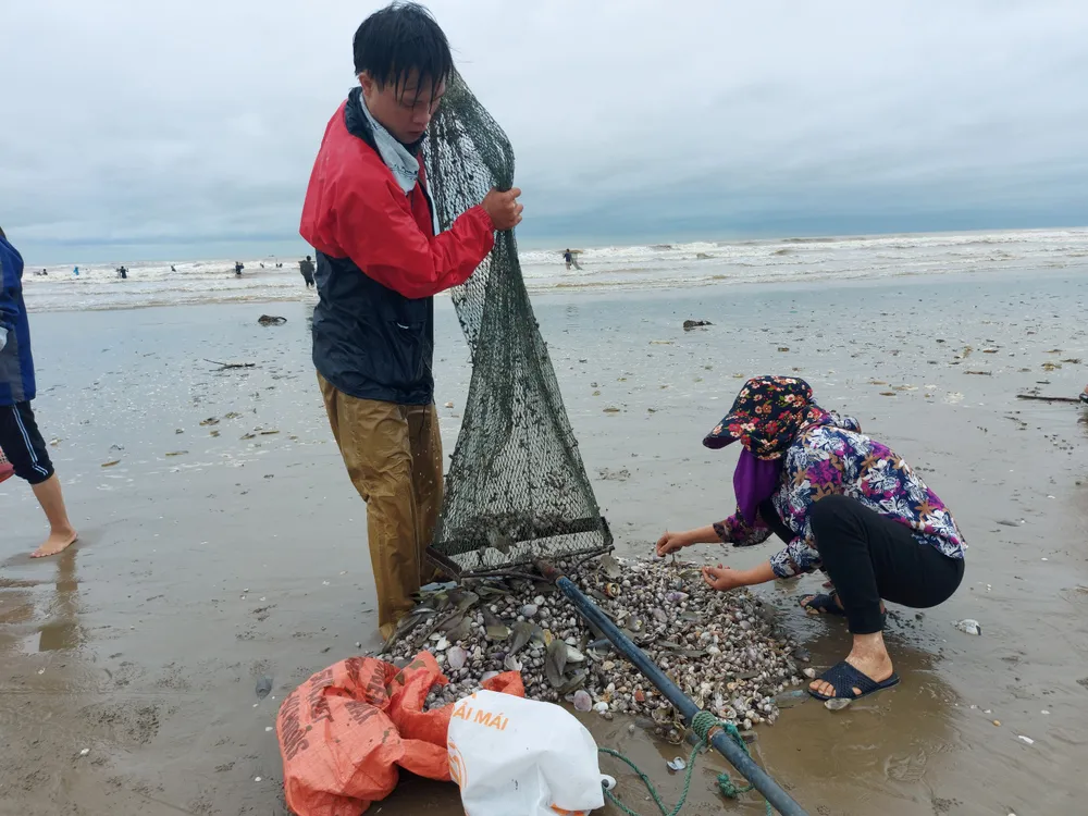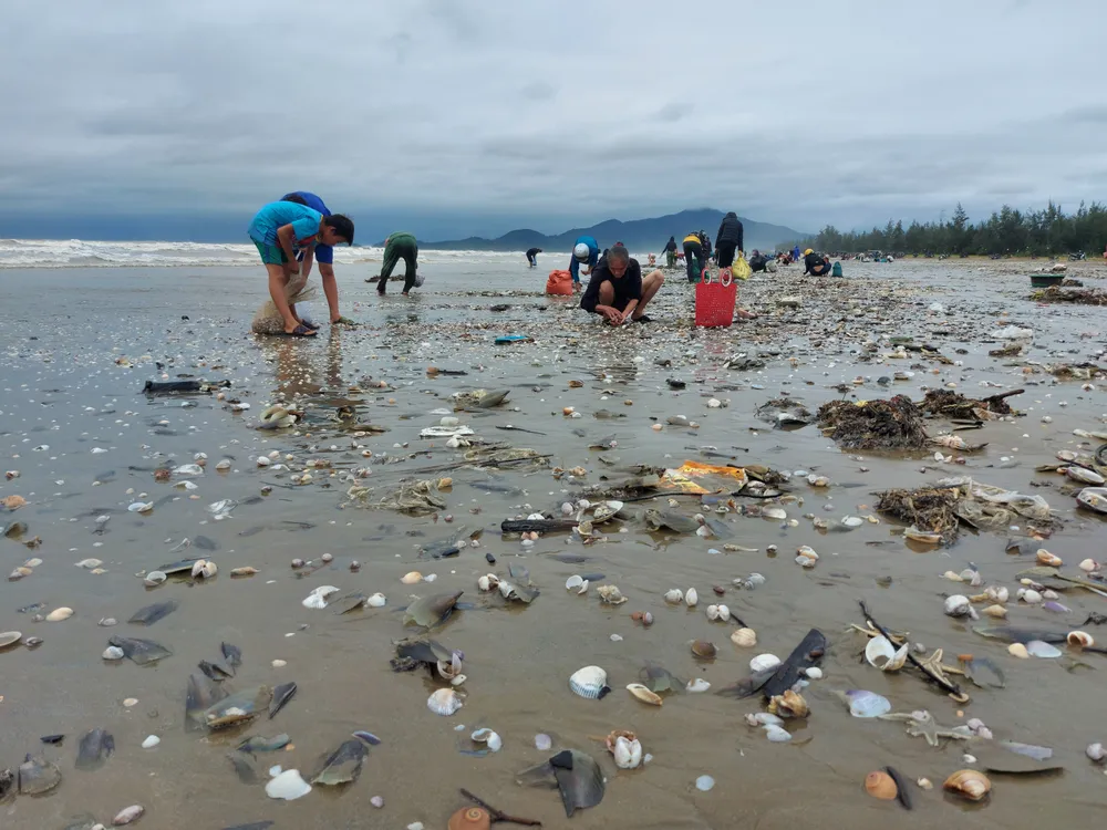 Người dân đổ xô ra bờ biển nhặt sò lông