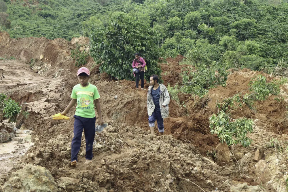 Người dân bất lực nhìn những vườn cà phê đang cho thu hoạch bị đất vùi lấp